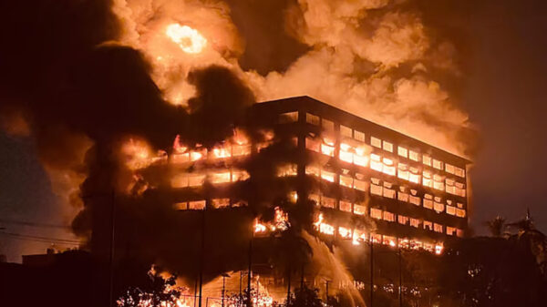 বৃহস্পতিবার (১৬ অক্টোবর) দুপুর আড়াইটার দিকে আগুনের সূত্রপাত হয়। ধীরে ধীরে তা তীব্র আকার ধারণ করে। দীর্ঘ সময় ধরে আগুন জ্বলতে থাকায় ভবনটি ধসে পড়ার আশঙ্কা তৈরি হয়েছে, পাশাপাশি আশপাশের ভবনগুলোতেও আগুন ছড়িয়ে পড়ছে।