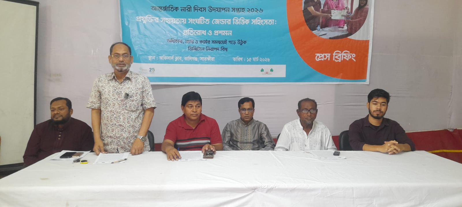 রবিবার (১৫ মার্চ-২৬) সকাল ১০টায় কালিগঞ্জ অফিসার্স ক্লাবের হলরুমে অগ্রগতি সংস্থার উদ্যোগে “প্রযুক্তির সহায়তায় সংঘটিত জেন্ডারভিত্তিক সহিংসতা প্রতিরোধ ও প্রশমন” বিষয়ক এ মতবিনিময় সভায় কালিগঞ্জ প্রেসক্লাবের সাধারণ সম্পাদক সুকুমার দাস বাচ্চুর সভাপতিত্বে ও অগ্রগতি সংস্থার প্রোগ্রাম অফিসার আবু আলমের সঞ্চালনায় প্রধান অতিথির বক্তব্য রাখেন কালিগঞ্জ প্রেসক্লাবের সভাপতি শেখ সাইফুল বারী সফু।