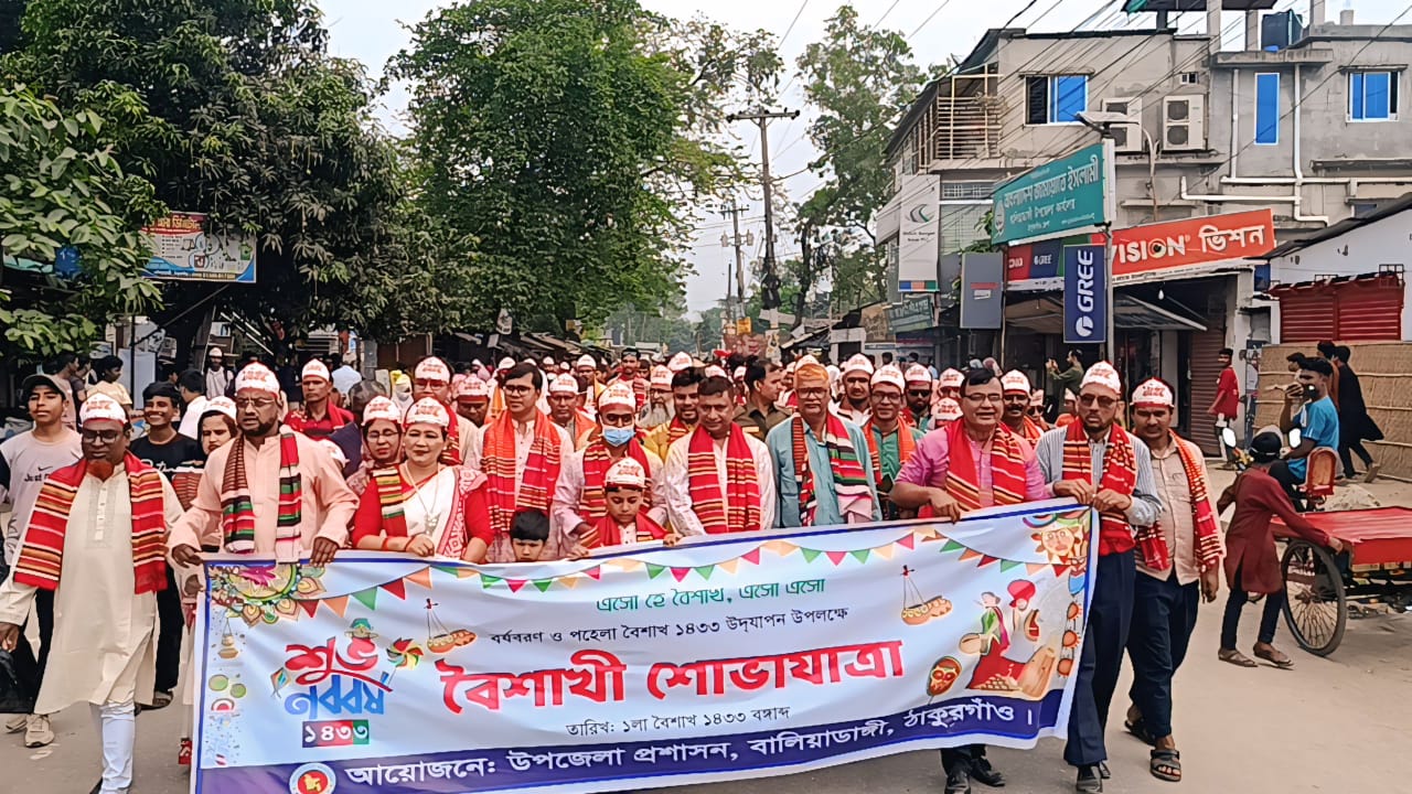 ঠাকুরগাঁওয়ের বালিয়াডাঙ্গী উপজেলায় যথাযোগ্য মর্যাদা ও উৎসবমুখর পরিবেশে ১৪৩৩ বাংলা নববর্ষ উদযাপন করা হয়েছে।