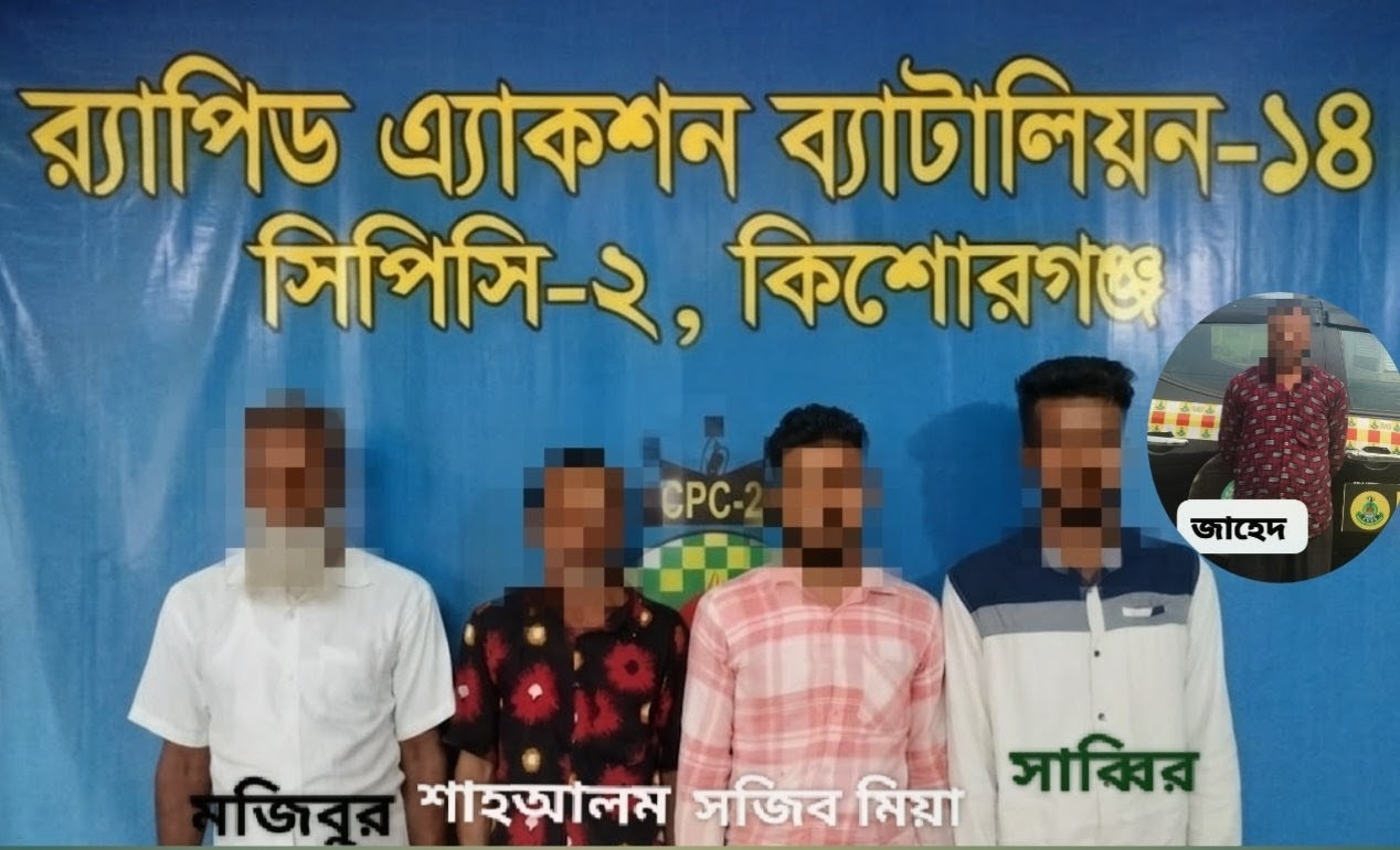 কিশোরগঞ্জে র‍্যাবের অভিযানে হত্যা ও হত্যাচেষ্টা মামলার ৫ আসামি গ্রেপ্তার