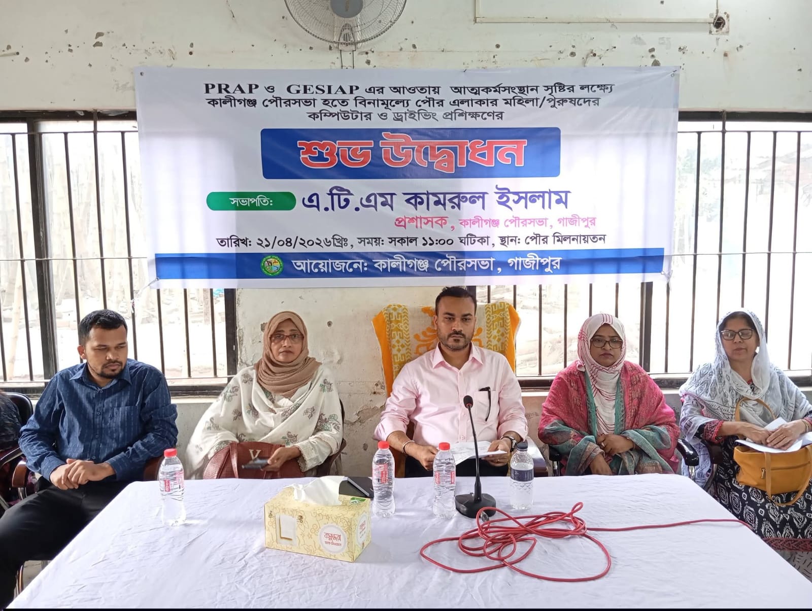 গাজীপুরের কালীগঞ্জ পৌরসভায় প্রান্তিক জনগোষ্ঠীর দক্ষতা উন্নয়নে গুরুত্বপূর্ণ উদ্যোগ হিসেবে বিনামূল্যে কম্পিউটার ও ড্রাইভিং প্রশিক্ষণ কর্মসূচির উদ্বোধন করা হয়েছে।