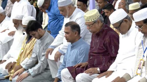 রাজধানীর হাইকোর্ট সংলগ্ন জাতীয় ঈদগাহ ময়দানে পবিত্র ঈদুল ফিতরের প্রধান জামাত অনুষ্ঠিত হয়েছে। শনিবার সকাল সাড়ে ৮টায় অনুষ্ঠিত এই জামাতে অংশ নেন রাষ্ট্রপতি মো. সাহাবুদ্দিন এবং প্রধানমন্ত্রী তারেক রহমান। এছাড়াও…